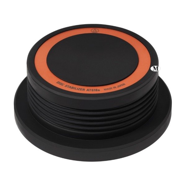 El estabilizador de discos AT618a se ajusta sobre el eje del tocadiscos para sujetar con firmeza los discos, lo que reduce la resonancia y mejora la calidad el sonido. Está fabricado de latón maquinado y cuenta con una cubierta de caucho protectora.